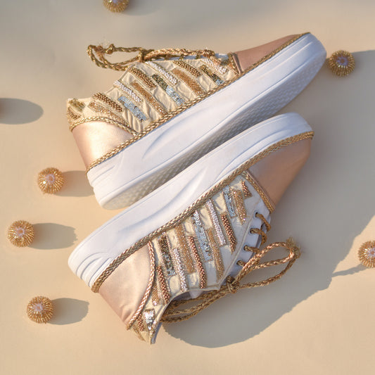 Golden wedding sneakers with sequins for Indians globally