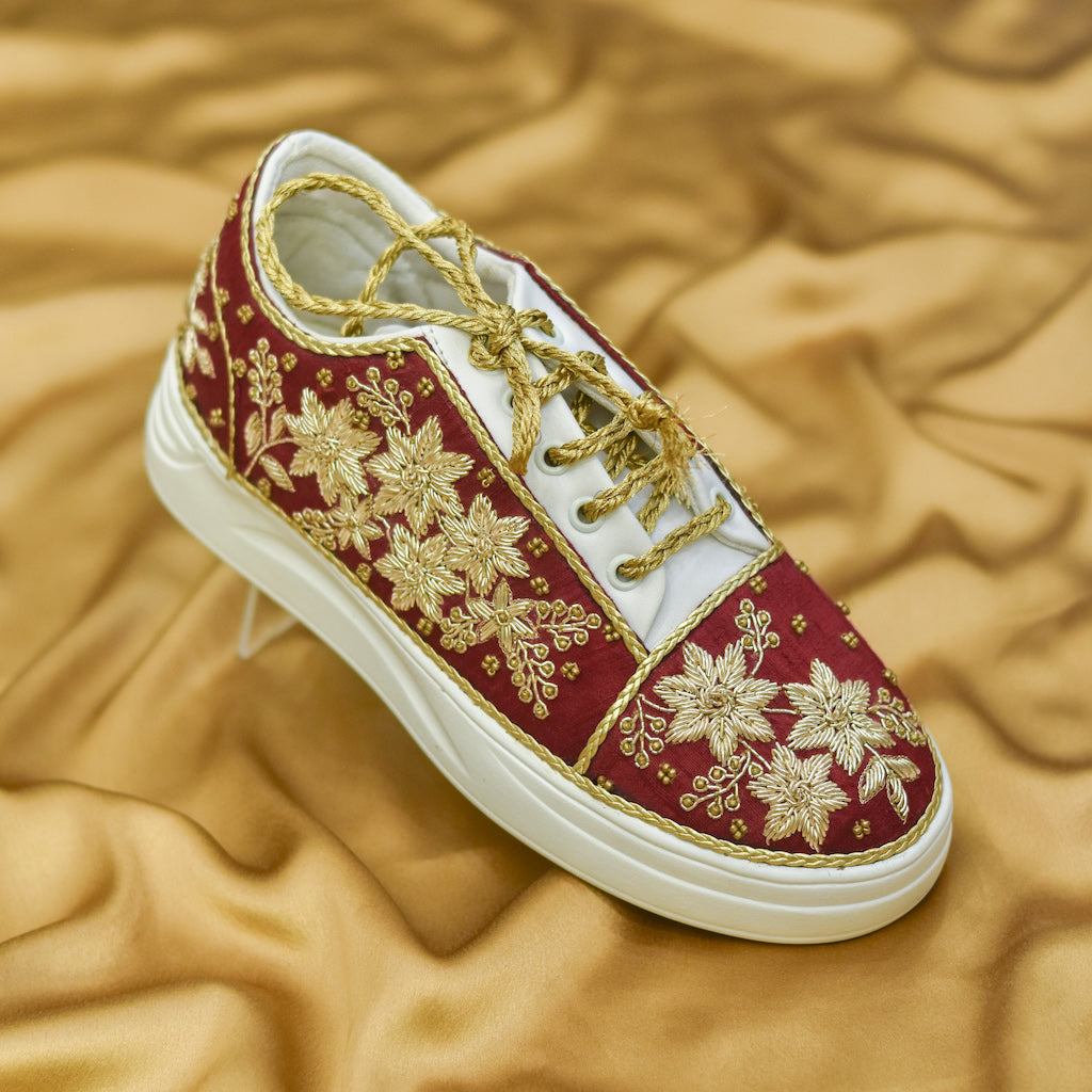 Designer bridal sneakers with mirror and zardozi work