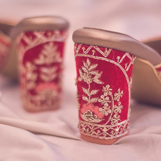 Gulshan Chappals | Red Velvet Heels