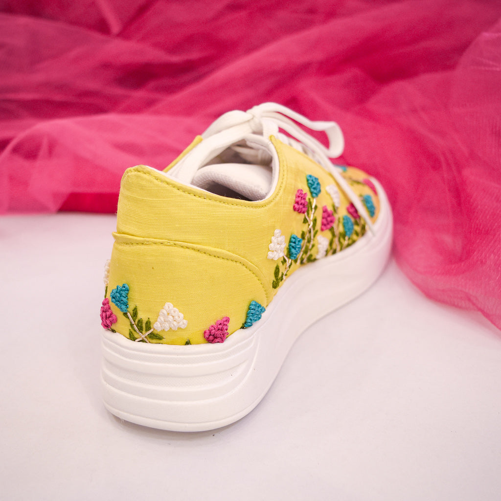 Create your own wedding footwear with custom embroidery, right heel height, matching colour and preferred comfort.