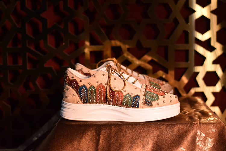 Create your own wedding footwear with custom embroidery, right heel height, matching colour and preferred comfort.