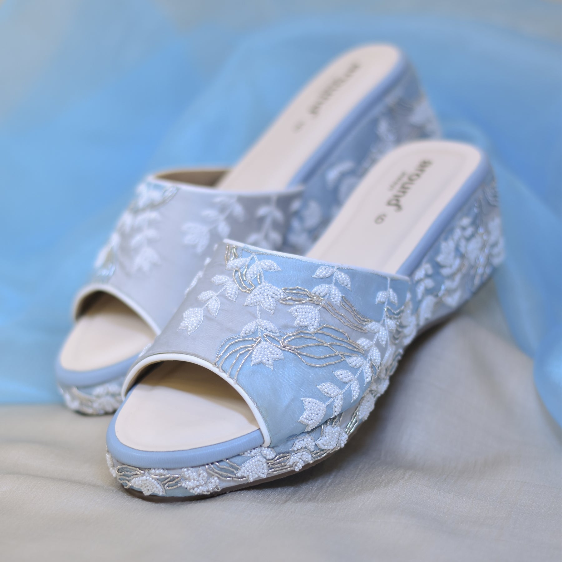 Pearl Comfortable Pastel Wedding Designer Wedge Heels