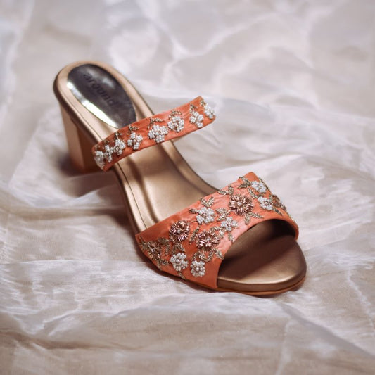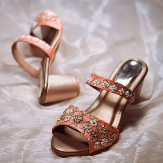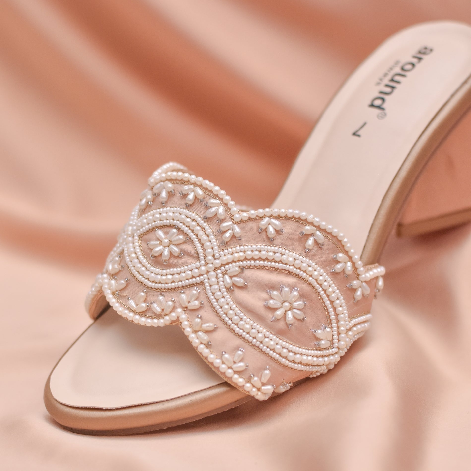 Create your own wedding footwear with custom embroidery, right heel height, matching colour and preferred comfort.