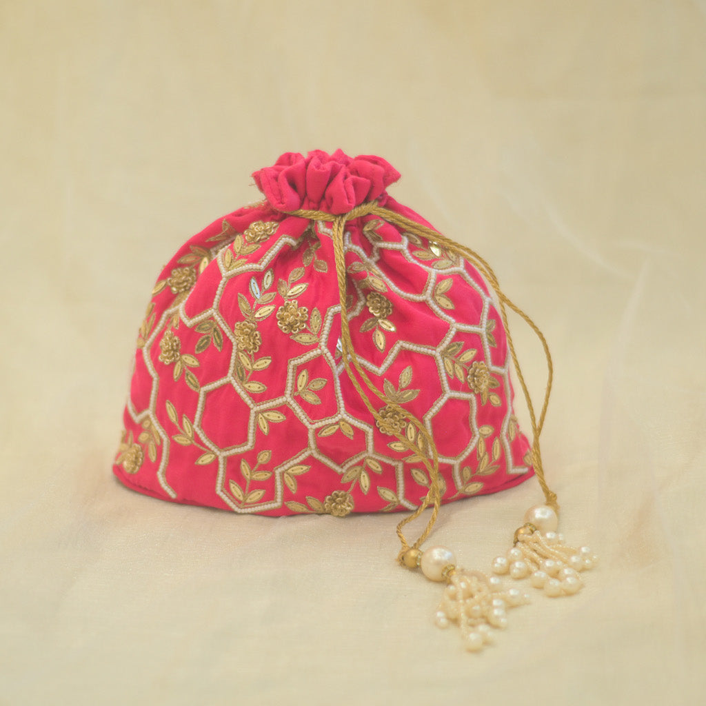 Honeycomb Potli | Fabric Based Bright Pink Bag