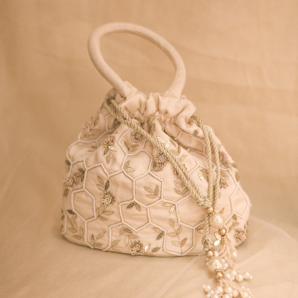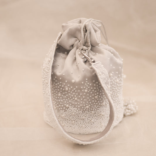 Oyster Potli | White Pearl Work and Detachable Belt