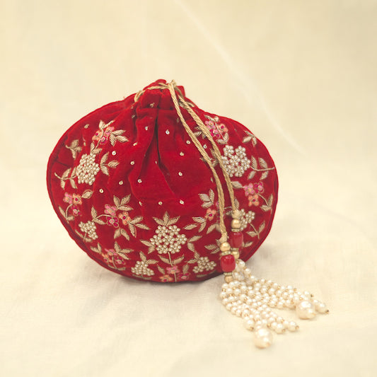 Red embellished royal potli for a premium look