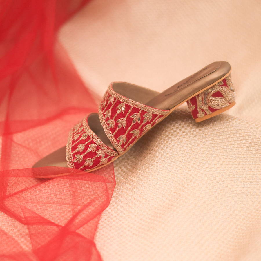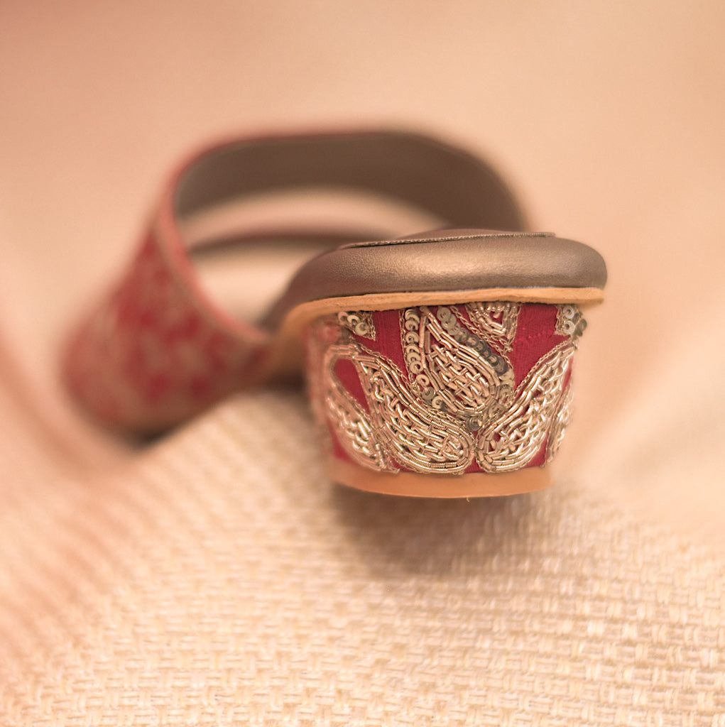 Create your own wedding footwear with custom embroidery, right heel height, matching colour and preferred comfort.