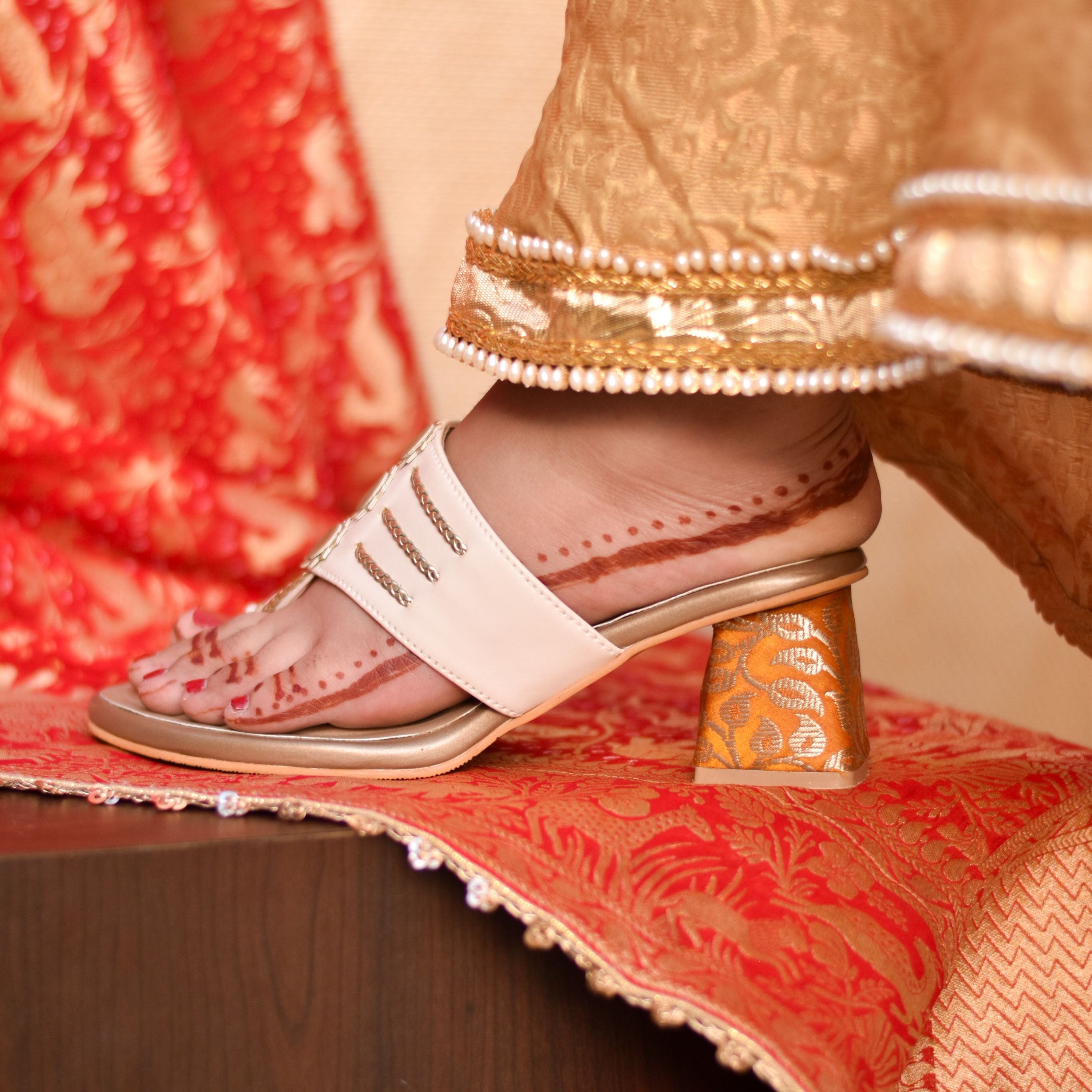Create your own wedding footwear with custom embroidery, right heel height, matching colour and preferred comfort.